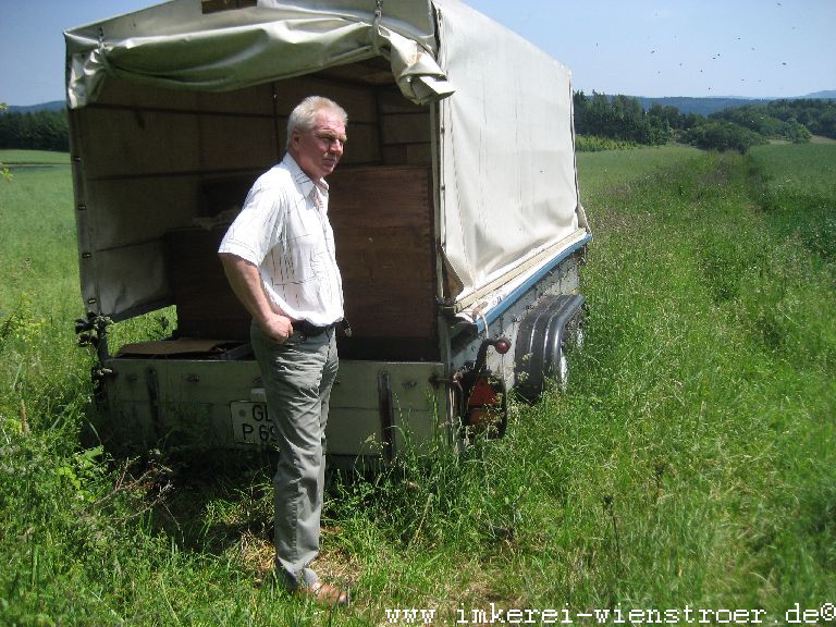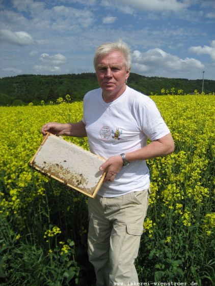 Ich imkere seit 1982 habe damals mit 4 Bienenvölkern angefangen, inzwischen sind es 19 und es ein Nebenerwerb daraus geworden. Ich arbeite mit der Carnicabiene im Zandermaß in Vollholzbeuten. Die Varroamilbe wird ausschließlich biologisch bekämpft. d.h. Mit den zur Zeit zugelassenen biologischen Mitteln Ameisensäure,Oxalsäure und Thymianöl Produkten. Ein eigener Wachskreislauf gehört zu meiner Betriebsweise, so kann ich chemische Belastungen durch zugekauftes Wachs ausschließen. Weil ich auf Chemie verzichte ernte ich auch mein eigenes unbelastetes Propolis.