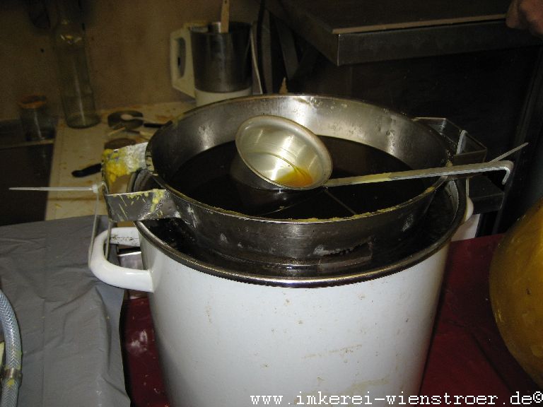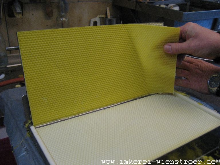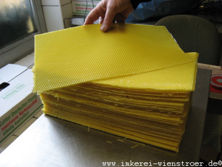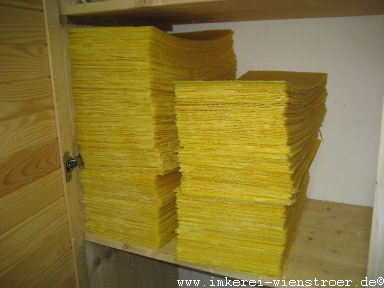 Wie schon erwähnt habe ich meinen eigenen Wachskreislauf und bin mir deshalb absolut sicher, daß mein Wachs frei von Varroabekämpfungsmitteln ist. Es ist zwar mehr Arbeit seine Mittelwände selbst herzustellen, aber für reinen naturbelassenen Honig ist dieser Aufwand gerechtfertigt. Es ist auch eine schöne Winterarbeit und der Duft des Bienenwachses macht schon Lust auf die kommende Saison im Frühjahr.